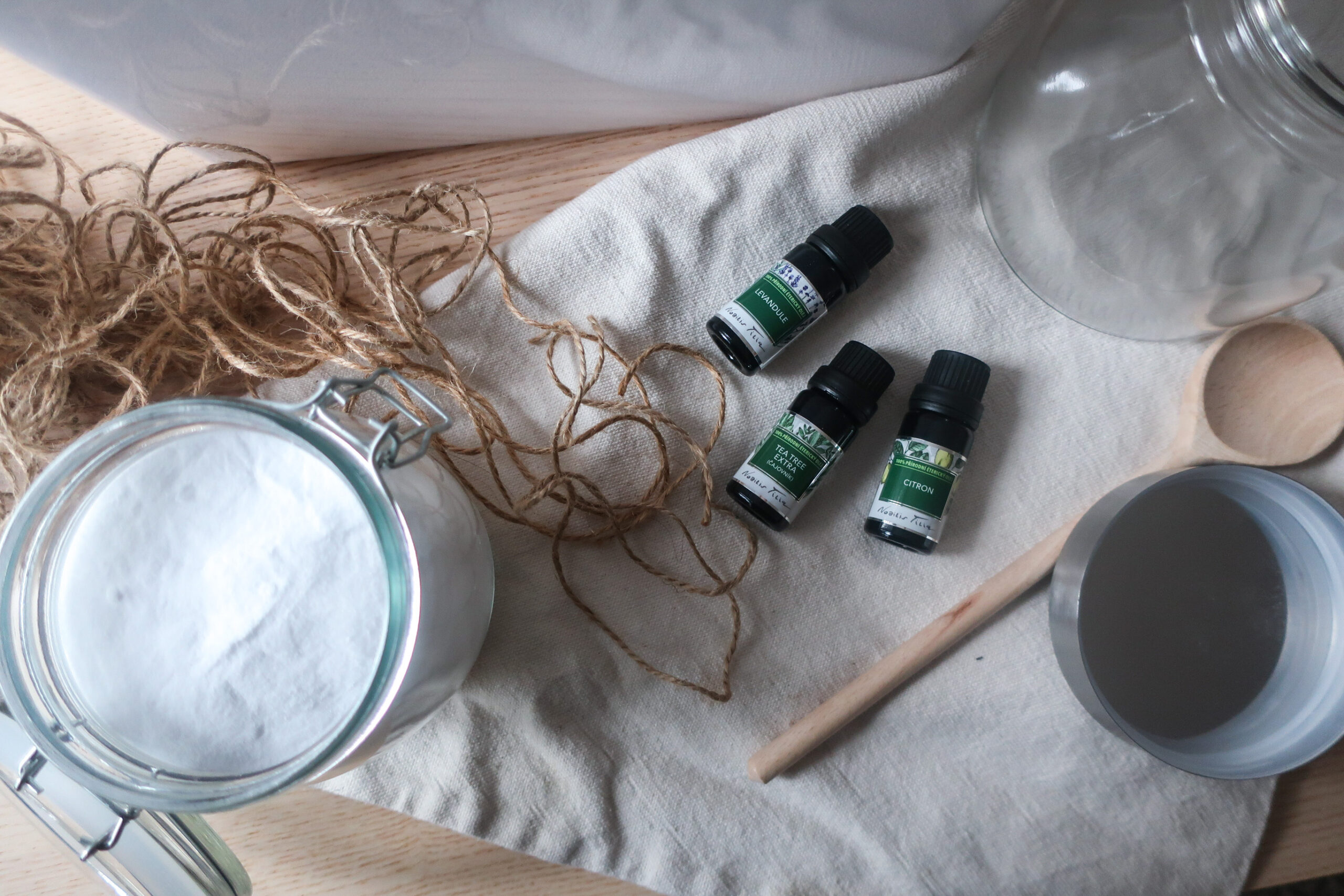 - 20-30 kapek esenciálního olejíčku (použila jsem po 10 kapkách EO citron, levandule a Tea Tree
