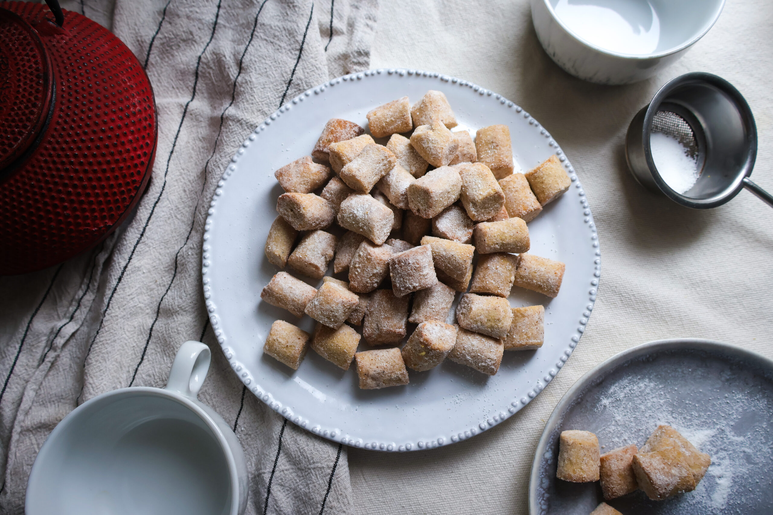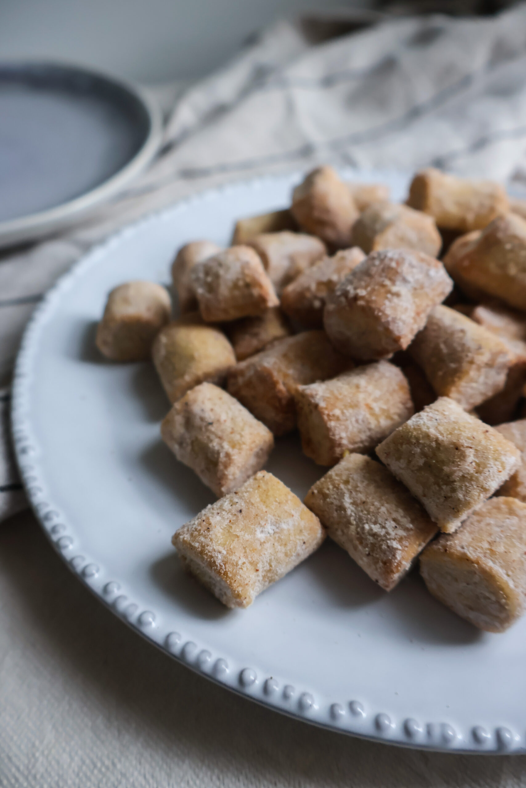 Inspirací pro tohle cukroví mi byl tradiční francouzský dezert z odpalovaného těsta Pets-de-nonne. Výroba tohoto dezertu není úplně jednoduchá. V podstatě se jedná o smažené kosuky odpalovaného těsta, které se ještě za tepla obalují ve směsi cukru a koření. No a to už jen příprava odpalovaného těsta kdekoho zastraší, natož ještě smažení! Dobrota je to ale veliká! Já jsem je teda připravovala pouze jednou, a to zrovna verzi s badyánovým cukrem.