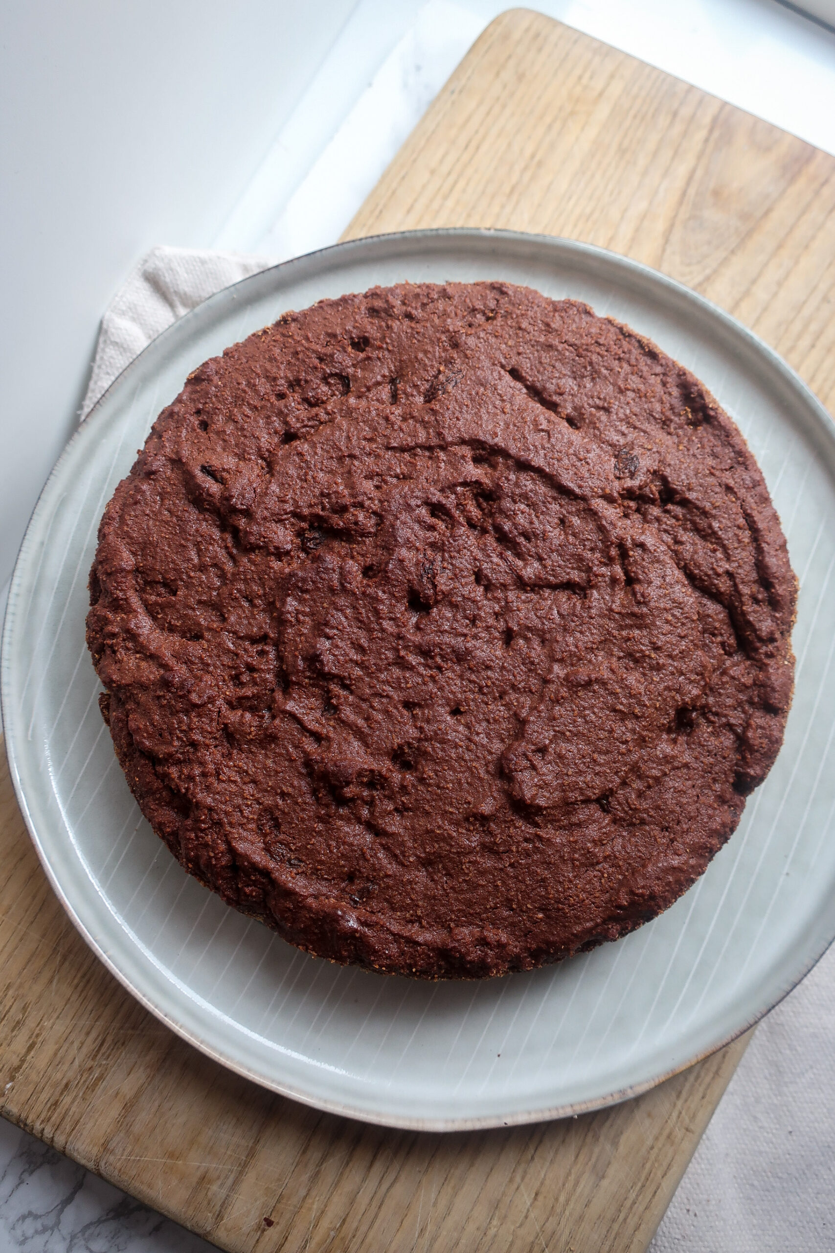 V podstatě se jedná o pečenou čokoládovou pěnu vylepšenou kokosovou mouku a voňavými rumovými rozinkami. Po vychladnutí připomíná něco mezi piškotem a brownies – hutné čokoládové těsto ale přitom lehké jako obláček, dává to smysl? Tomu se nedá odolat!