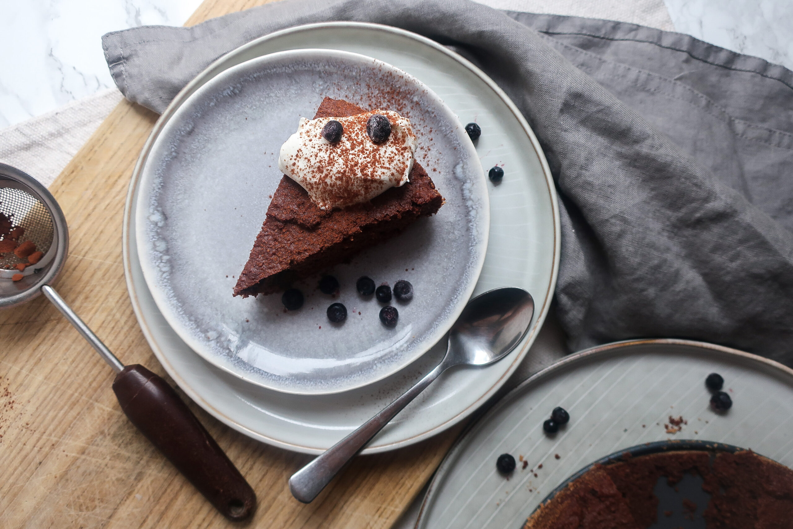 - Vychladlý dort můžeme ještě posypat kakaem a nejlépe chutná s kopcem šlehačky.