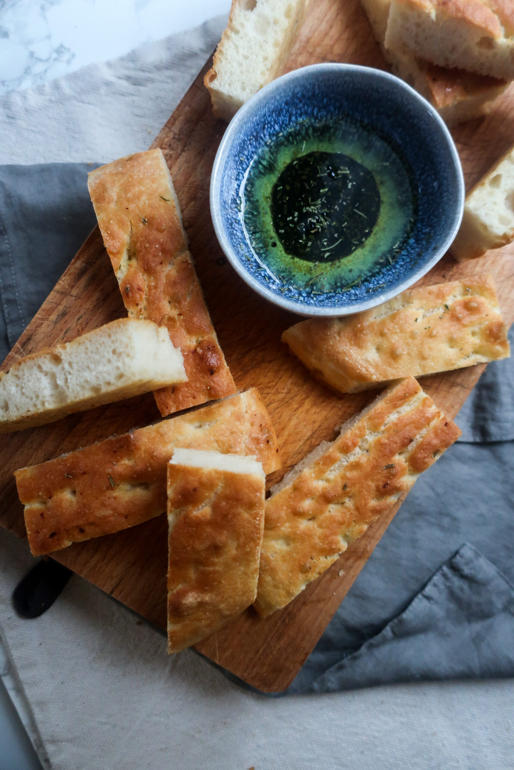 Já doma preferuju focacciu tenkou a křupavou. Zbožňuju totiž tu její křupavost a nasáklost bylinkovým olivovým olejem! Proto jí peču buď na plechu nebo v kulaté formě, která zajistí i pěkný kulatý tvar. Pokud toužíte po focaccie vyšší, jednoduše ji upečte ve formě s menším průměrem!