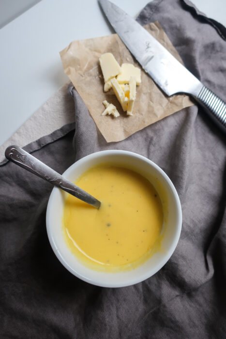 Holandská omáčka byla pro mě dlouho velká neznámá. Přišlo mi to prostě moc práce, navíc se jedná o emulzifikaci s, pro mě, nejasným výsledkem. Říkala jsem si, co s tím udělám, když se mi omáčka srazí? Jestli si říkáte to stejné, tak nebojte, tahle omáčka lze totiž zachránit i po oném sražení! Navíc s touhle metodou přípravy Holandské omáčky získáte množství omáčky tak akorát pro 2-4 osoby na snídani, takže se většinou stejně hned spotřebuje.