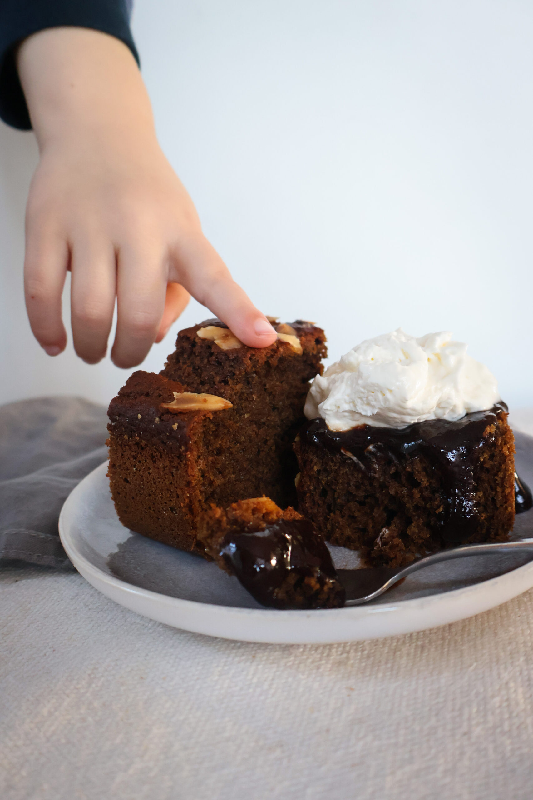 Nakonec přidáme do našeho perníku křupavý kontrast. Vrch perníku posypeme na plátky nakrájenými mandlemi a nebo jinými oříšky, ale mandle vypadají spolu s tmavým těstem prostě NÁRAMNĚ! Perník pečeme v troubě rozpálené na 180°C přibližně 35 minut. Vychladlý perník podáváme nejlépe spolu s povidly a trochou jogurtu či zakysané smetany navíc.