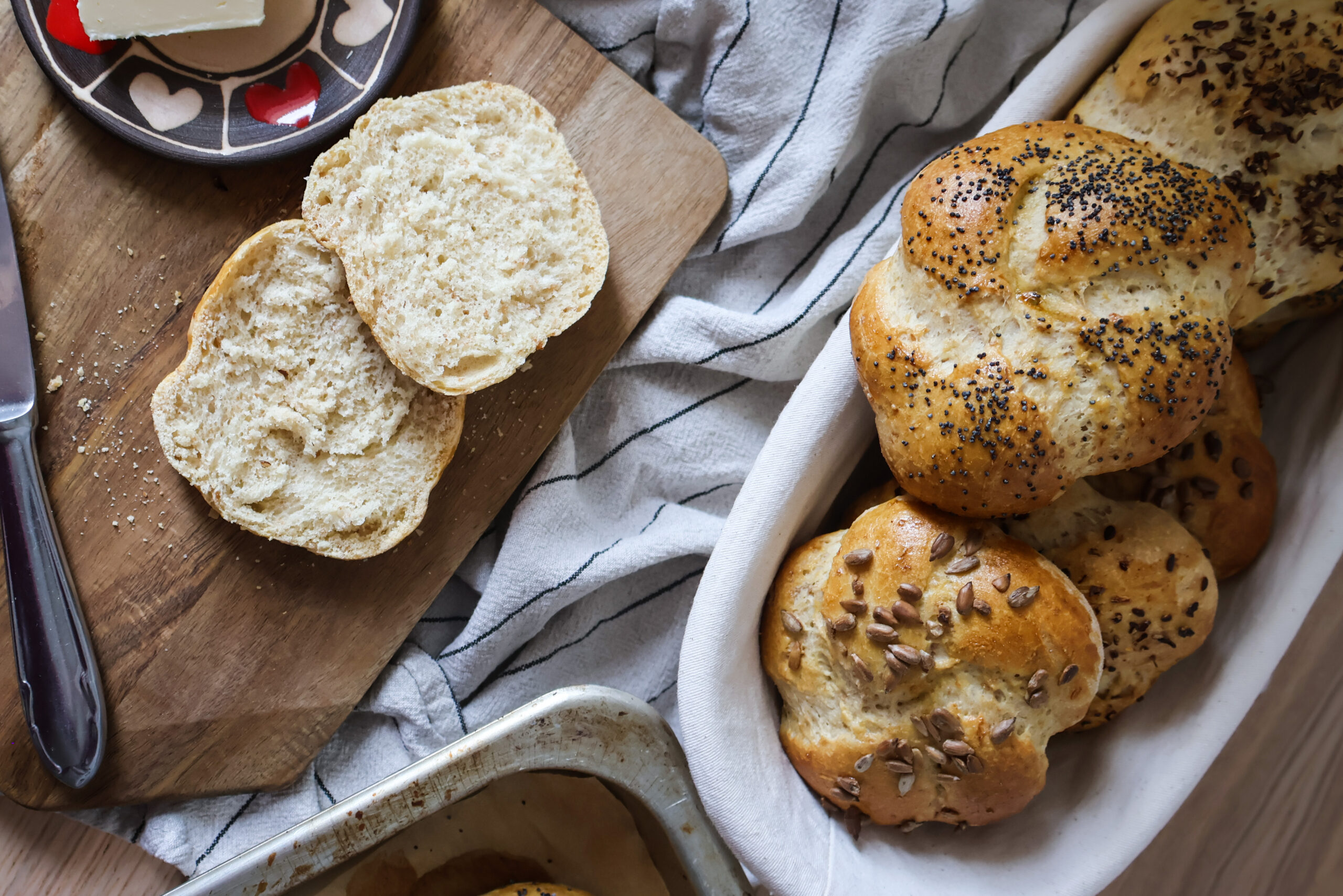 Domácí housky nejen že úžasně chutnají a provoní vám celý byt, ale také vám dlouho vydrží jako čerstvé. Potřebujete na ně jen 5  ingrediencí, které stejně máte už nejspíš doma a navíc, nepotřebujete na to žádné speciální přístroje. Takže jestli stejně jako já, nemáte robota, nebojte, na zadělání těsta vám totiž stačí jen obyčejná mísa a vařečka!